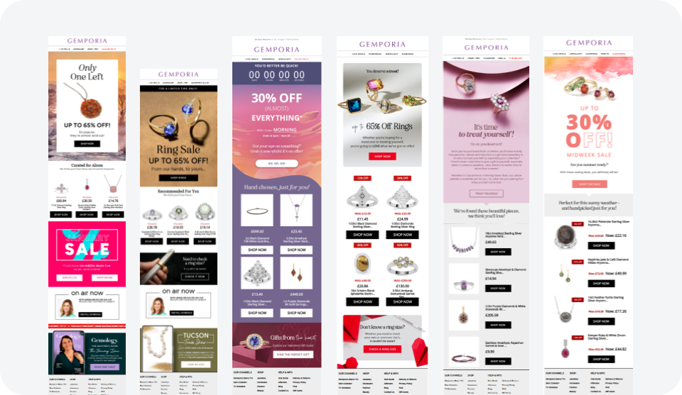 With a suite of ‘pick & mix’ recipes and creative designs Gemporia were able to save significant campaign production time and also drive increased campaign performance with more relevant email content