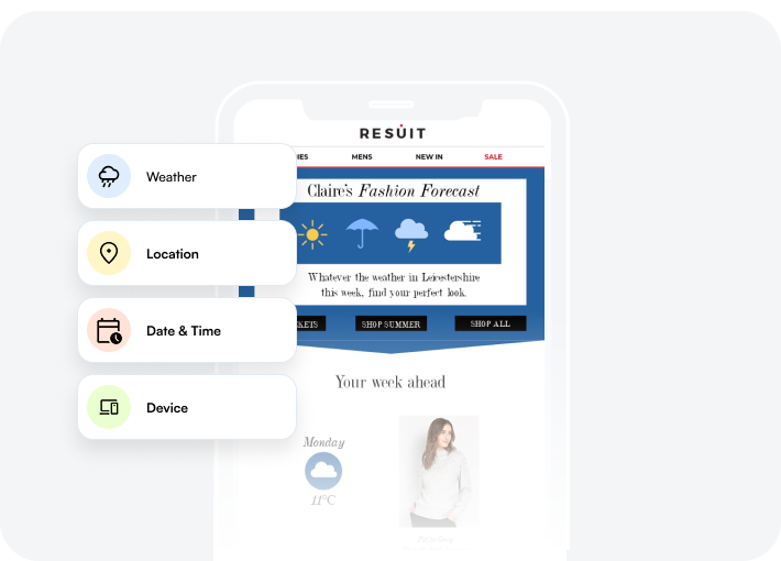 Personalise by location, weather and even device the email is opened on.